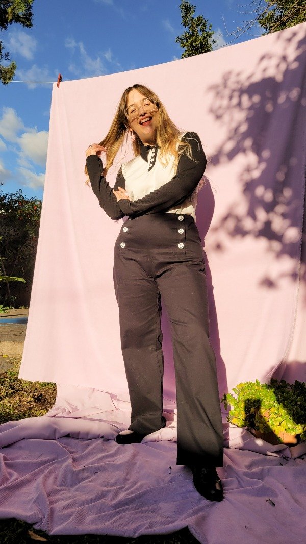 Pantalón de gabardina color negro con botones smiley hechos de plastico biodegradable con diseños completamente únicos y hechos especialmente para Rustic. Se realizaron de manera muy artesanal con ensambles hechos a mano.